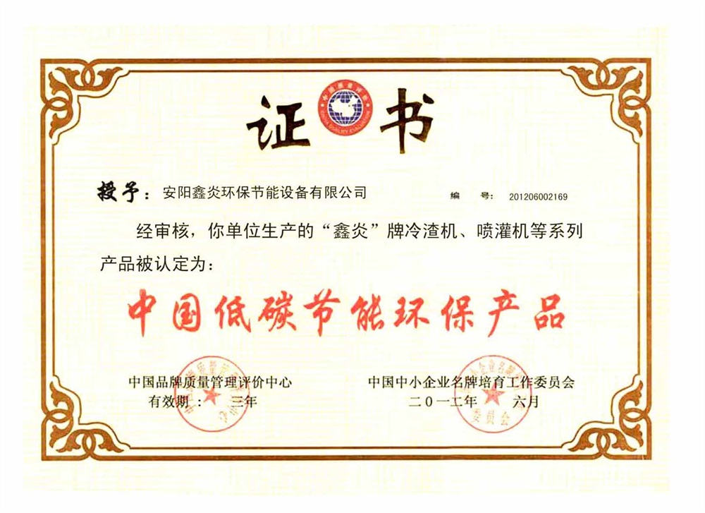 中國低碳節(jié)能環(huán)保產(chǎn)品證書